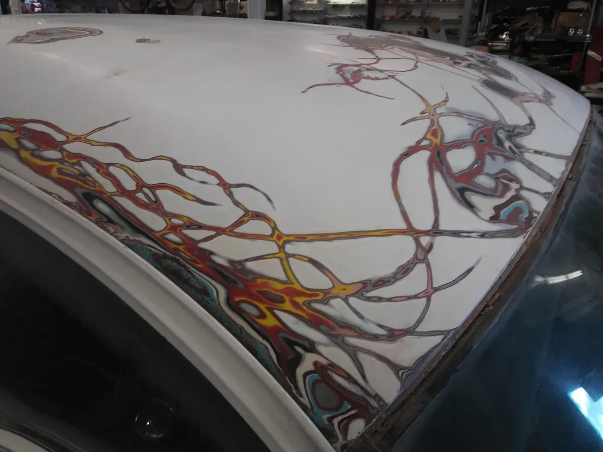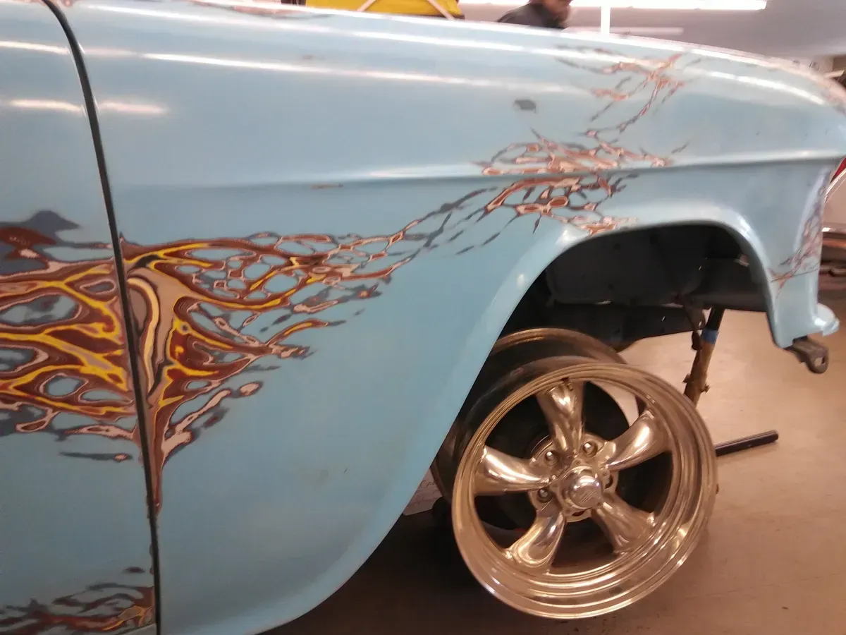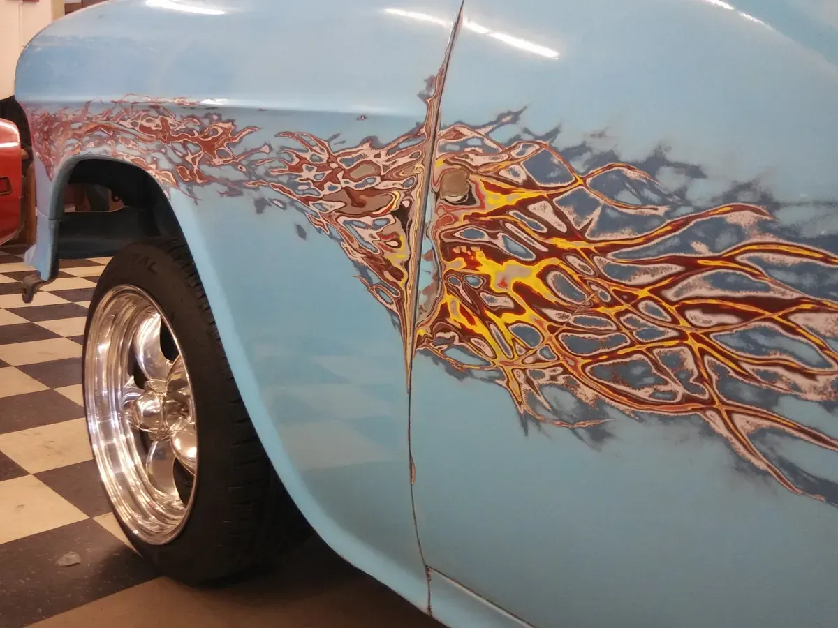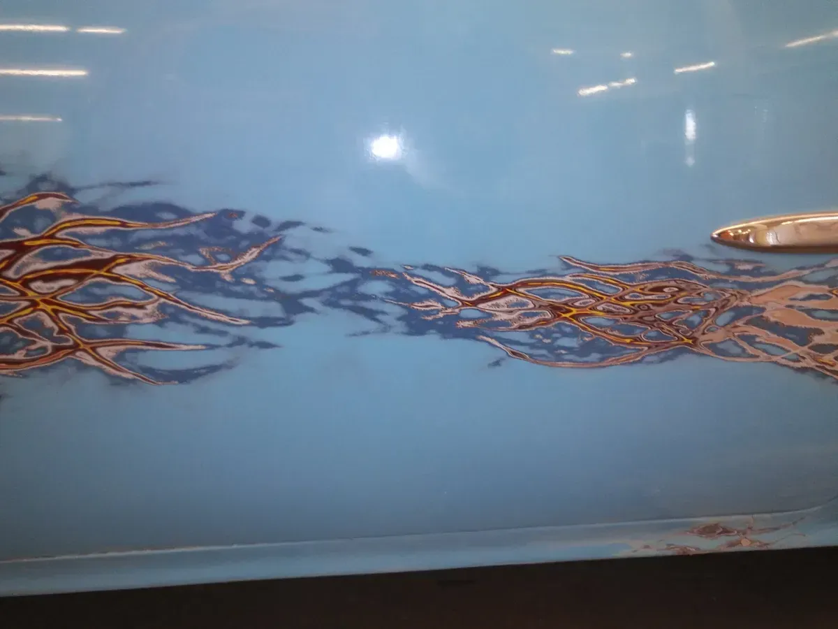 The most unique part of the car is the paint. The previous owner was a professional car painter and applied between 7–8 colors of paint over decades (the LH front fender has fewer layers). I personally sanded through multiple layers of paint and primer to create a “flame”-type effect throughout the body of the car. It is not yet completed, but very close. These areas have been color-sand polished to create a layered color effect—almost an agate/cloisonné enamel look that is extremely unique and eye-catching.