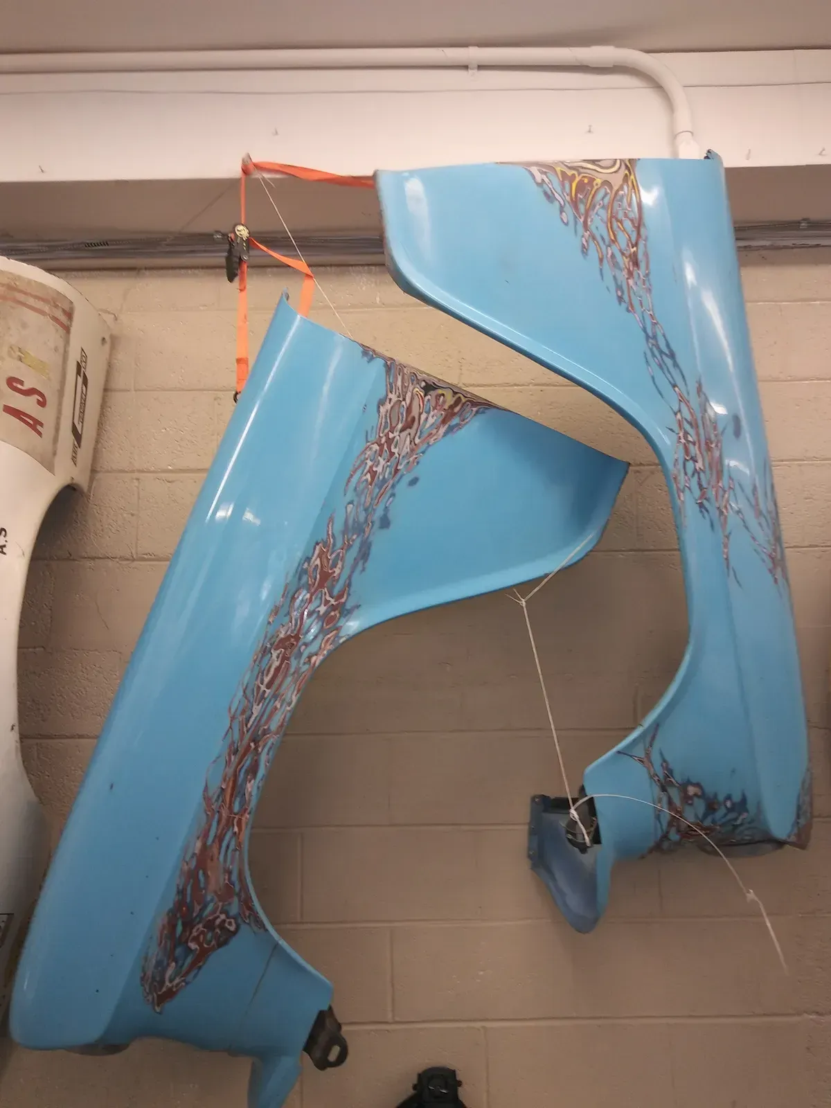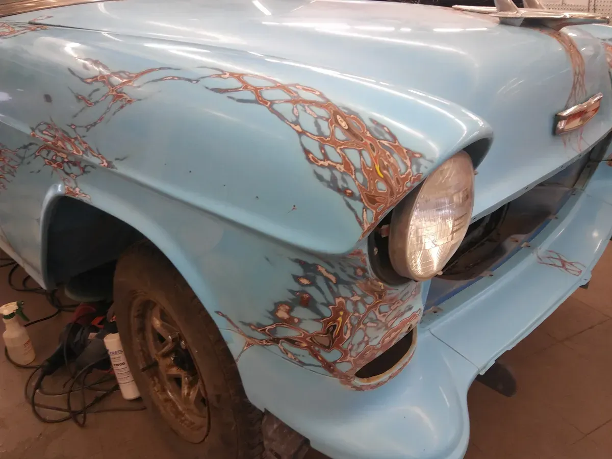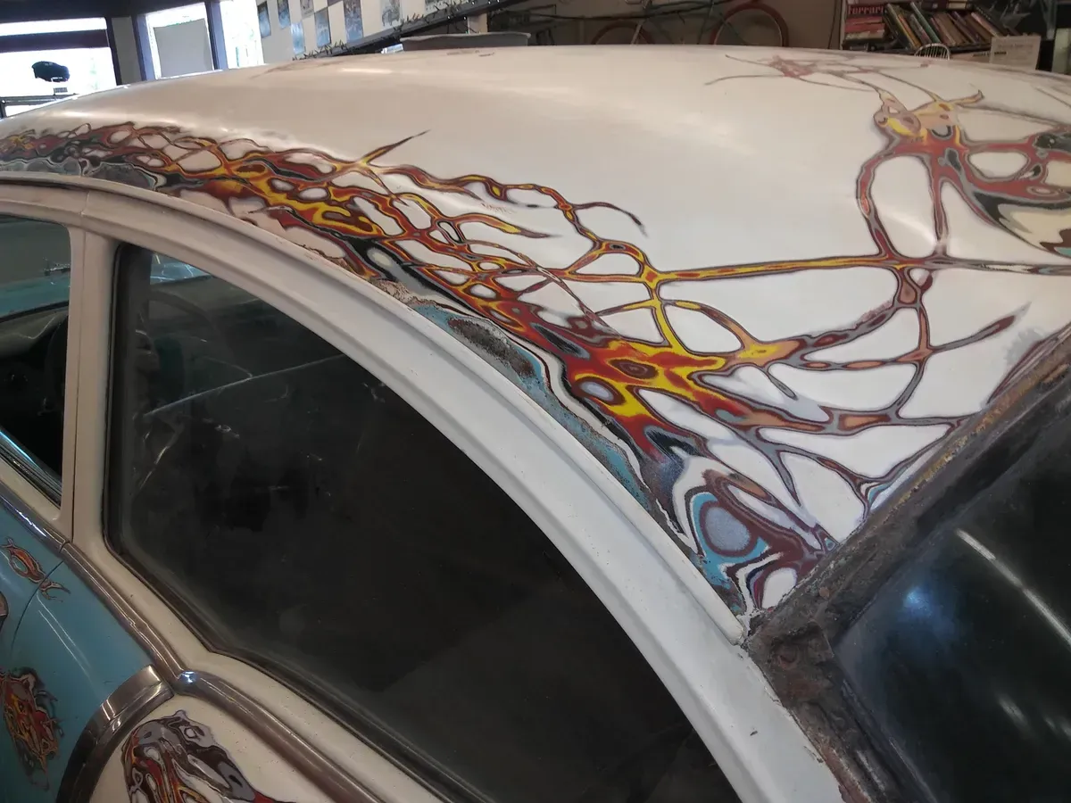 The most unique part of the car is the paint. The previous owner was a professional car painter and applied between 7–8 colors of paint over decades (the LH front fender has fewer layers). I personally sanded through multiple layers of paint and primer to create a “flame”-type effect throughout the body of the car. It is not yet completed, but very close. These areas have been color-sand polished to create a layered color effect—almost an agate/cloisonné enamel look that is extremely unique and eye-catching.