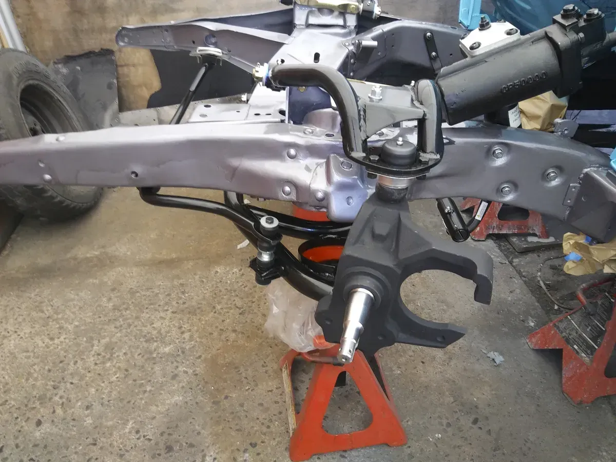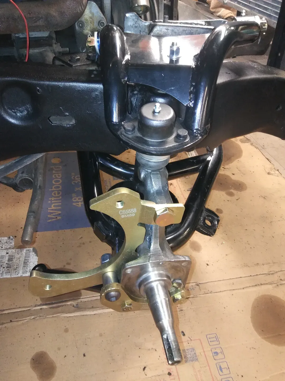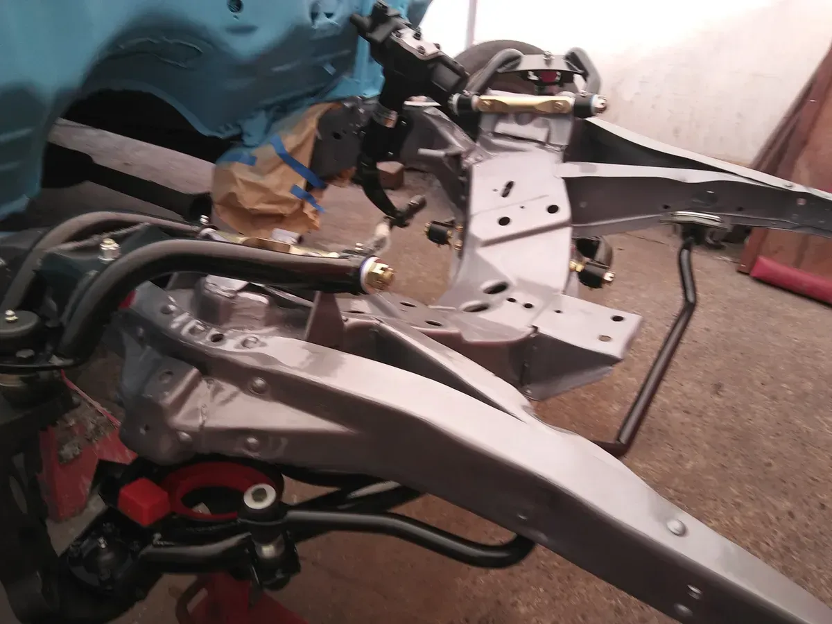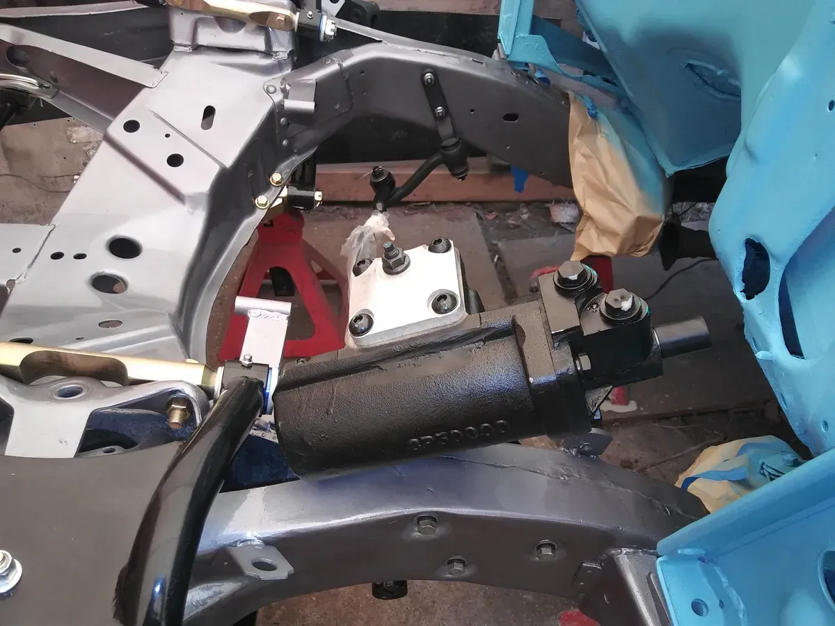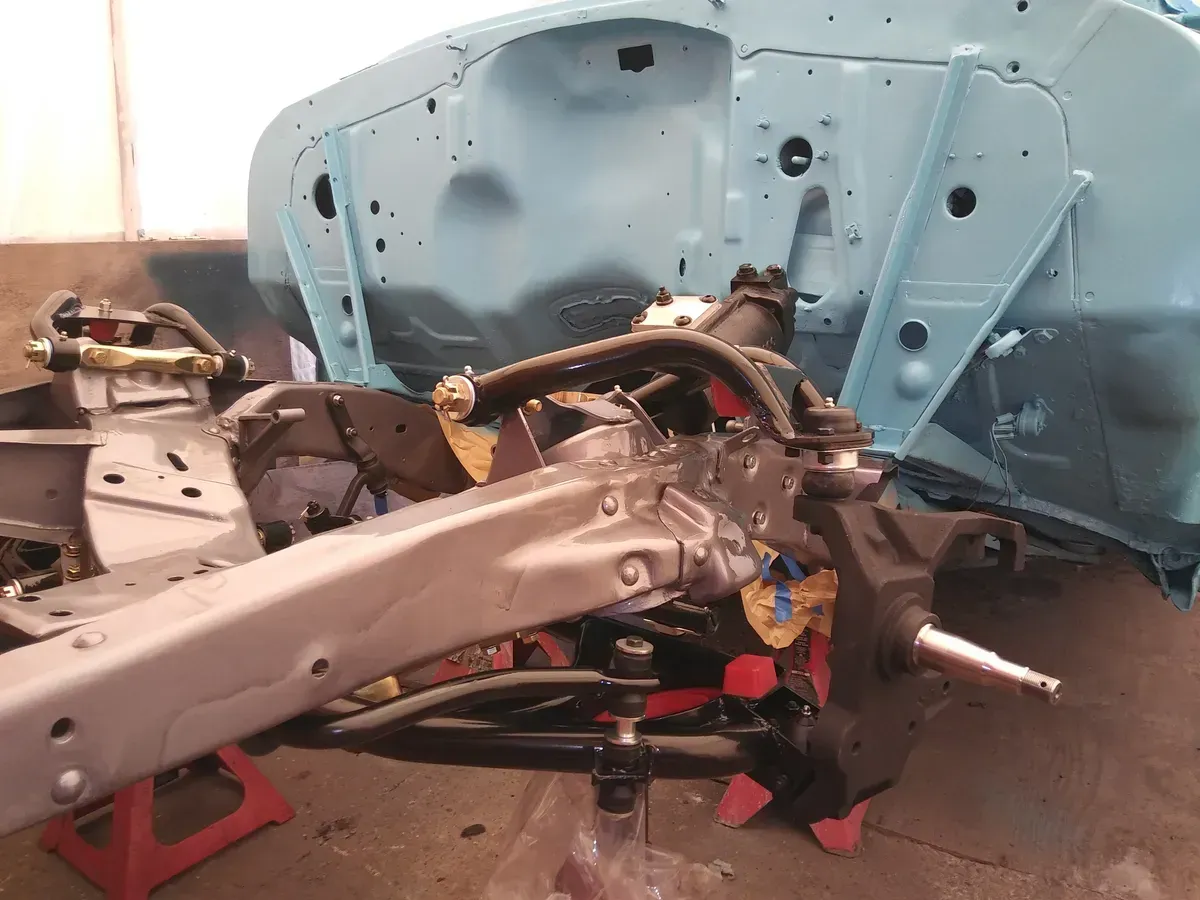 We added a new Mustang II–style front end with power disc brakes, power steering, upgraded suspension, tilt wheel, and more.