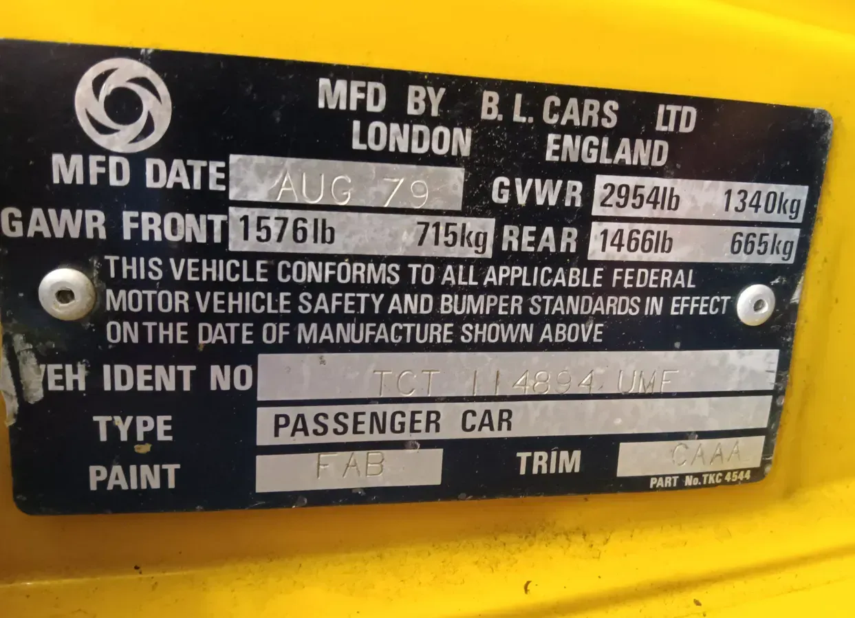 - VIN: TCT114894UMF — MFR Date: August 1979